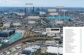 87 Ipswich Road is a modern commercial office building in Woolloongabba, just 2 kilometres from Brisbane CBD. The property offers expansive floor plates of up to 1,950 square metres, 137 parking spaces across basement and on-grade options, and a 700 square metre rooftop terrace with panoramic views.